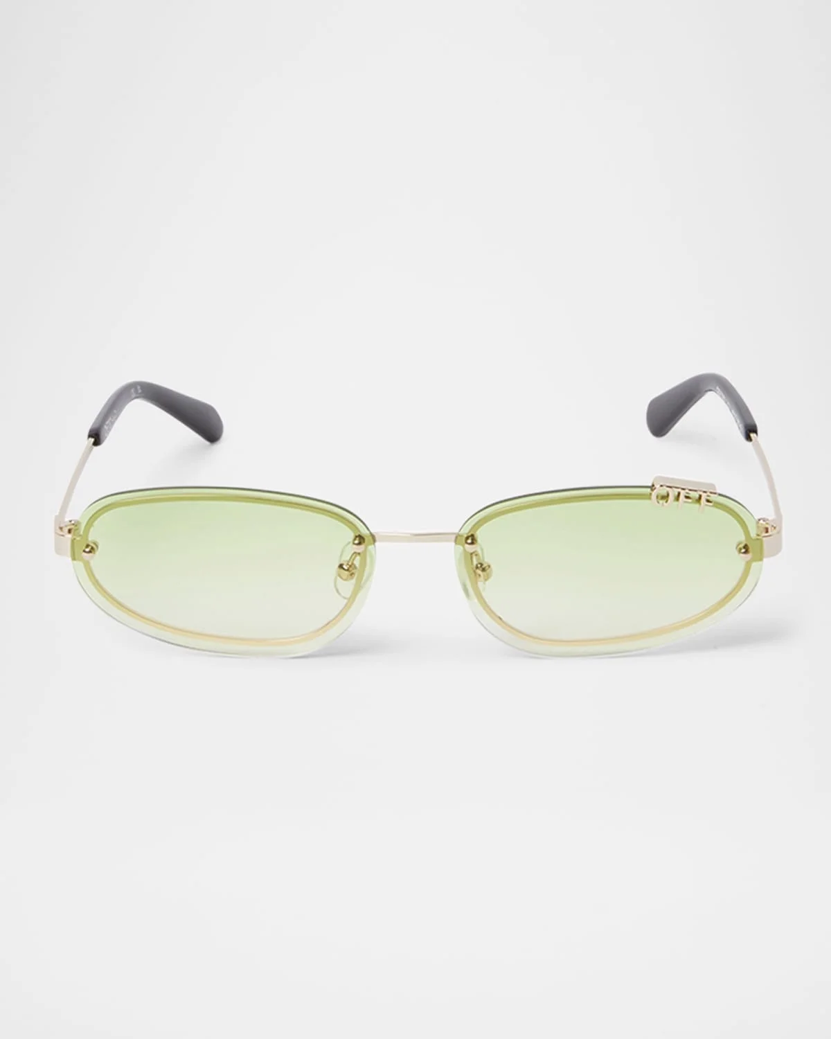 - Off-White "Miami" sunglasses oval sunglasses in metal and plastic - Eye/bridge/temple (in mm): 60-15-145 - Gradient lenses - Adjustable nose pads - Thin, tapered arms - Capped earpieces - Goldtone logo detail at the right lens - Metal/plastic - 100% UVA/UVB protection - Made in Italy - Proposition 65 warning for California residents