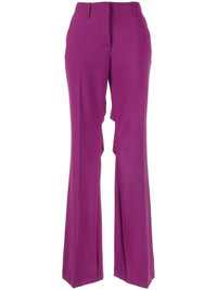 mid-rise flared trousers OFF-WHITE takes a minimal approach with these fuchsia pink flared trousers. The concealed front fastening adds to that simple aesthetic. Made in Italy Composition Outer: Polyester 53%, Virgin Wool 43%, Elastane 4% Lining: Cotton 100%