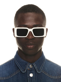 Milano rectangle-frame sunglasses from OFF-WHITE featuring white, acetate, rectangle frame, grey tinted lenses, logo-debossed arm and curved tips. These glasses come with a protective case.. MATERIALS 100% Acetate FITTING Bust 0cm Height 0cm Hips 0cm Waist 0cm