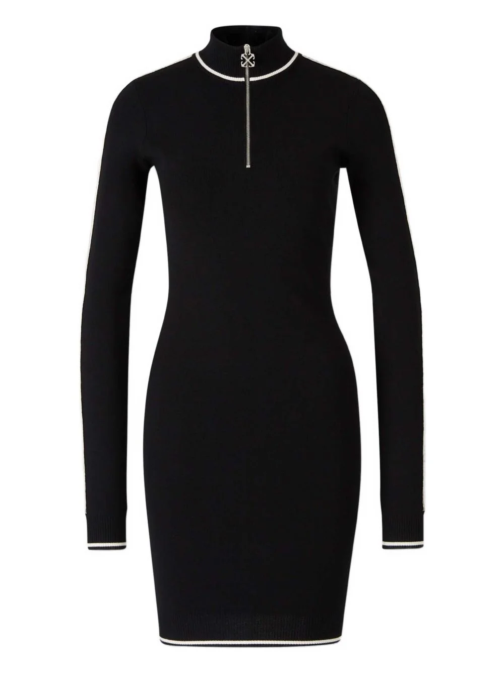 zip-fastening stripe-detail dress Highlights - Black - Zip fastening - High neck - Long sleeves - Stripe detail Made in Italy Composition Cotton 70%, Polyester 30% Washing instructions Read Manufacturer Guidelines