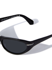Napoli oval-frame sunglasses from OFF-WHITE featuring black, acetate, logo print at the arm, oval frame, grey tinted lenses, UV-protective lenses, straight arms and curved tips. These glasses come with a protective case.. MATERIALS 100% Acetate FITTING Bust 0cm Height 0cm Hips 0cm Waist 0cm