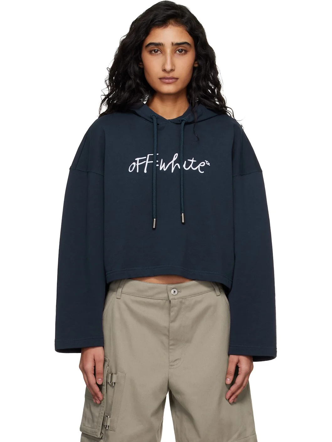Cotton jersey hoodie. · Drawstring at hood · Logo embroidered at chest · Cropped hem · Dropped shoulders Supplier color: Night sky 100% cotton. Made in Bulgaria 261607F097005
