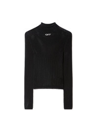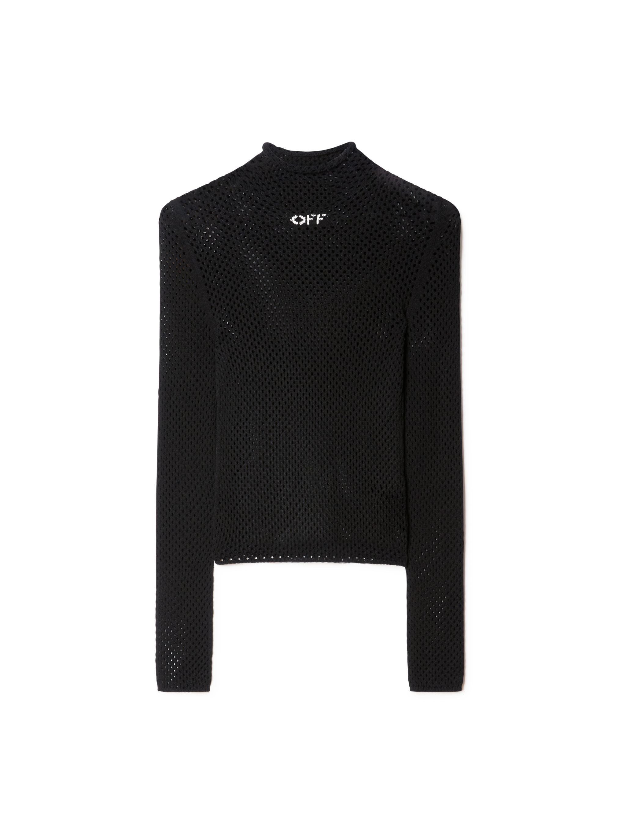 Long sleeves black top with OFF script in white at front.Turtleneck collar.Second skin fit MATERIALS 30% Polyester 70% Viscose FITTING Model Nicole Onwuchekwa wears size S Height: 5’ 95" (177 cm) Chest: 32” (81 cm) Waist: 24” (61 cm)
