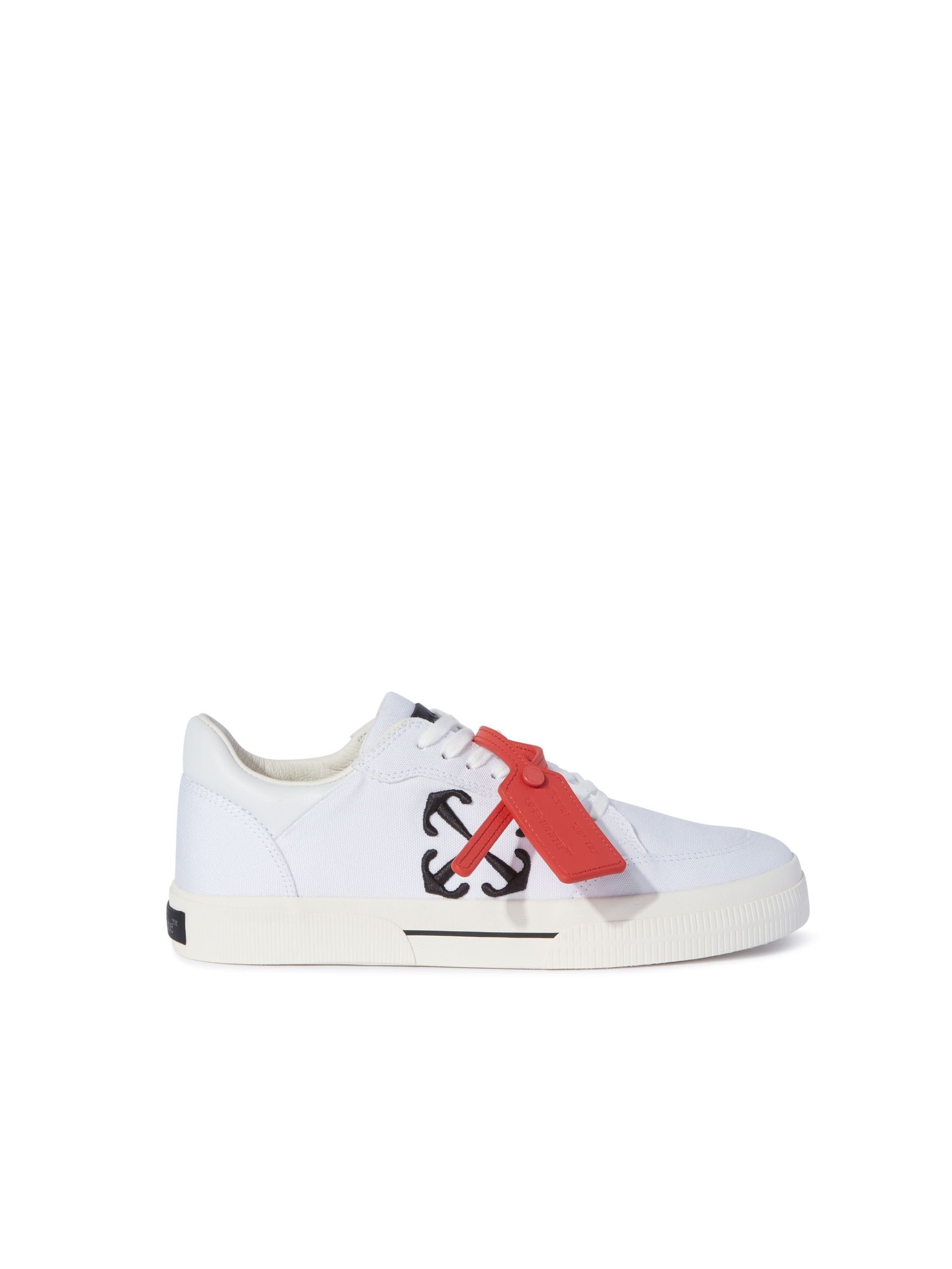 These skate-inspired low-top sneakers are constructed from leather and cotton canvas panels with an embroidered arrow logo and feature a vulcanized rubber sole. Complete with "ZIP TIE" tag and chunky laces branded with signature quote. DETAILS - Materials:OUTER:Canvas 100%, LINING:Calf Leather 100%, SOLE:Rubber 100% - Code: OWIA288C99FAB0010110