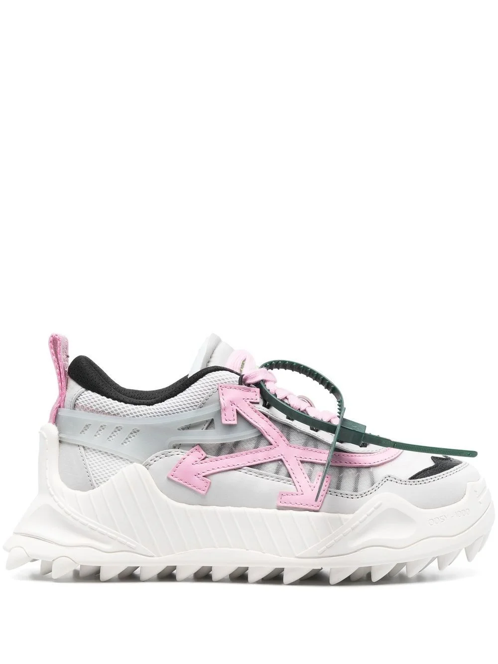 Odsy 1000 chunky low-top sneakers Embodying Off-White's signature streetwear aesthetic, the Odsy 1000 sneakers are defined by their chunky silhouette that sits atop a sharply ridged sole. The pair features some of the brand's most coveted motifs, including the Zip Tie detail on the laces. Imported Composition Outer: Polyester 100%, Calf Leather 100% Sole: Rubber 100% Lining: Fabric 100% SIZE & FIT Measurement HEEL 1.57 in(4 cm) Sole height 0.98 in(2.5 cm)