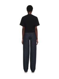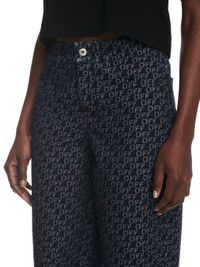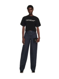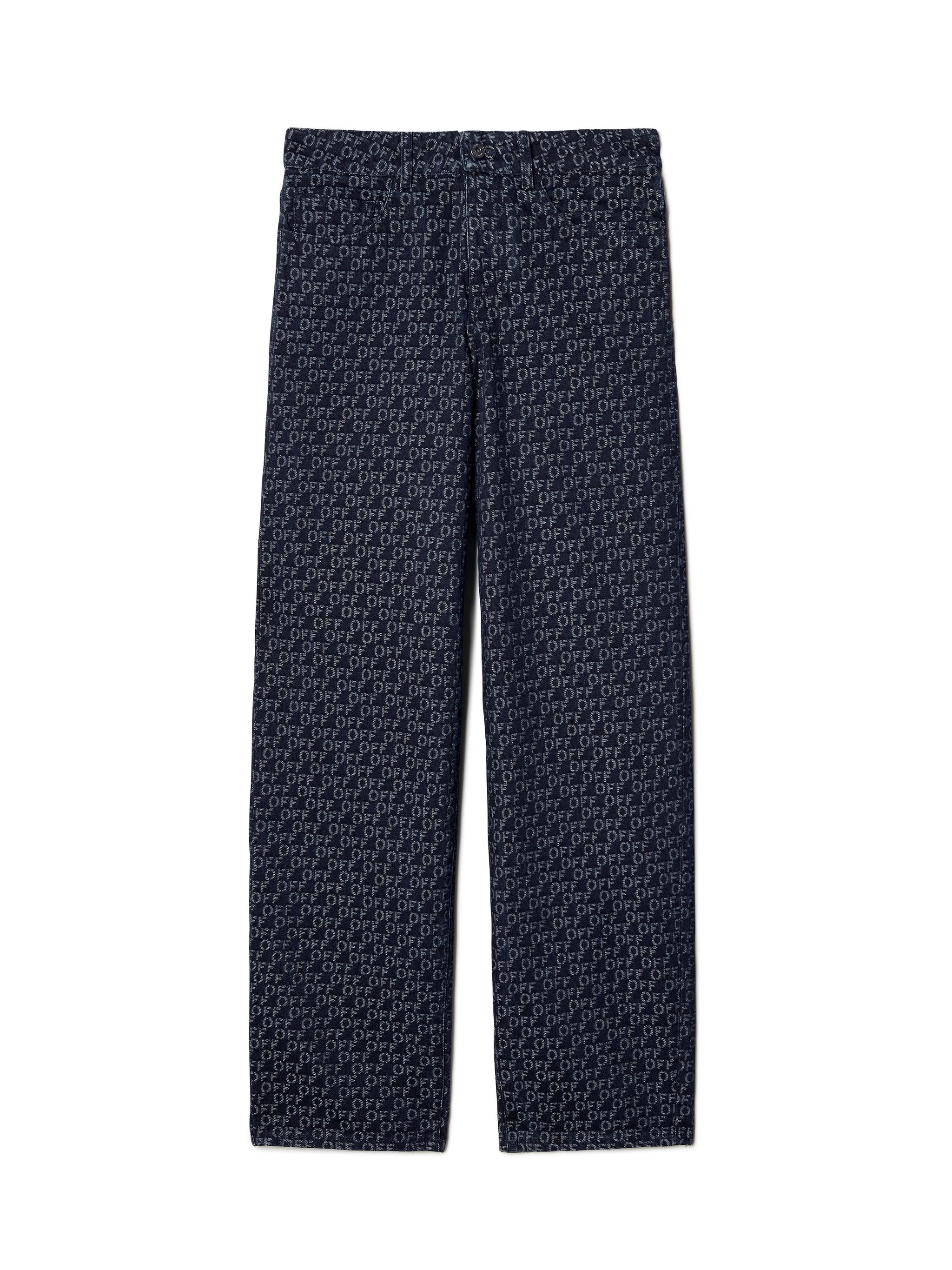 logo-jacquard straight-leg jeans from OFF-WHITE featuring cotton, denim, jacquard logo motif, high waist, belt loops, front button and zip fastening, classic five pockets, straight leg and navy blue/white. MATERIALS 100% Cotton FITTING Bust 0cm Height 0cm Hips 0cm Waist 0cm