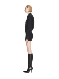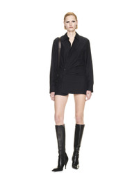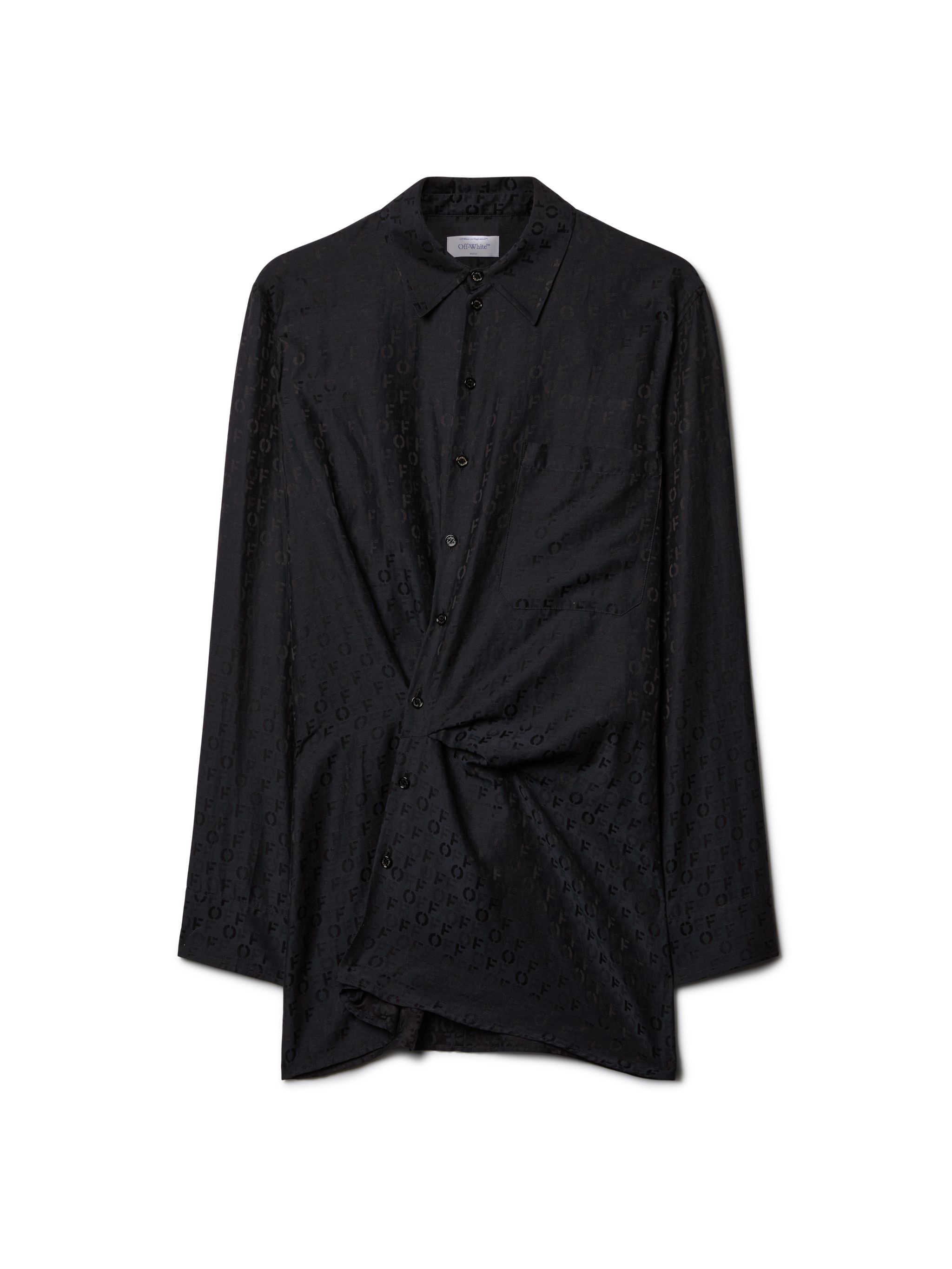 Black long sleeves shirt dress with twist frontal buttons closure.Off-white logo in black as a pattern.Spread collar MATERIALS 56% Silk 44% Cotton FITTING Model Elisa Nijman wears size S Height: 5’ 8" (179 cm) Chest: 32“ (81 cm) Waist: 23” (60 cm)