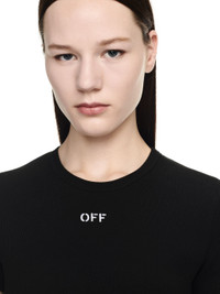 Part of Wardrobe, the curated selection of Off-White™ staples, this ribbed cotton t-shirt is enriched with elastane for a close fit. Made in Italy. MATERIALS 98% Cotton 2% Elastane FITTING Model Lydia Celesta wears size 38 Height: 5’ 10" (178 cm) Chest: 30” (77 cm) Waist: 23” (58 cm)