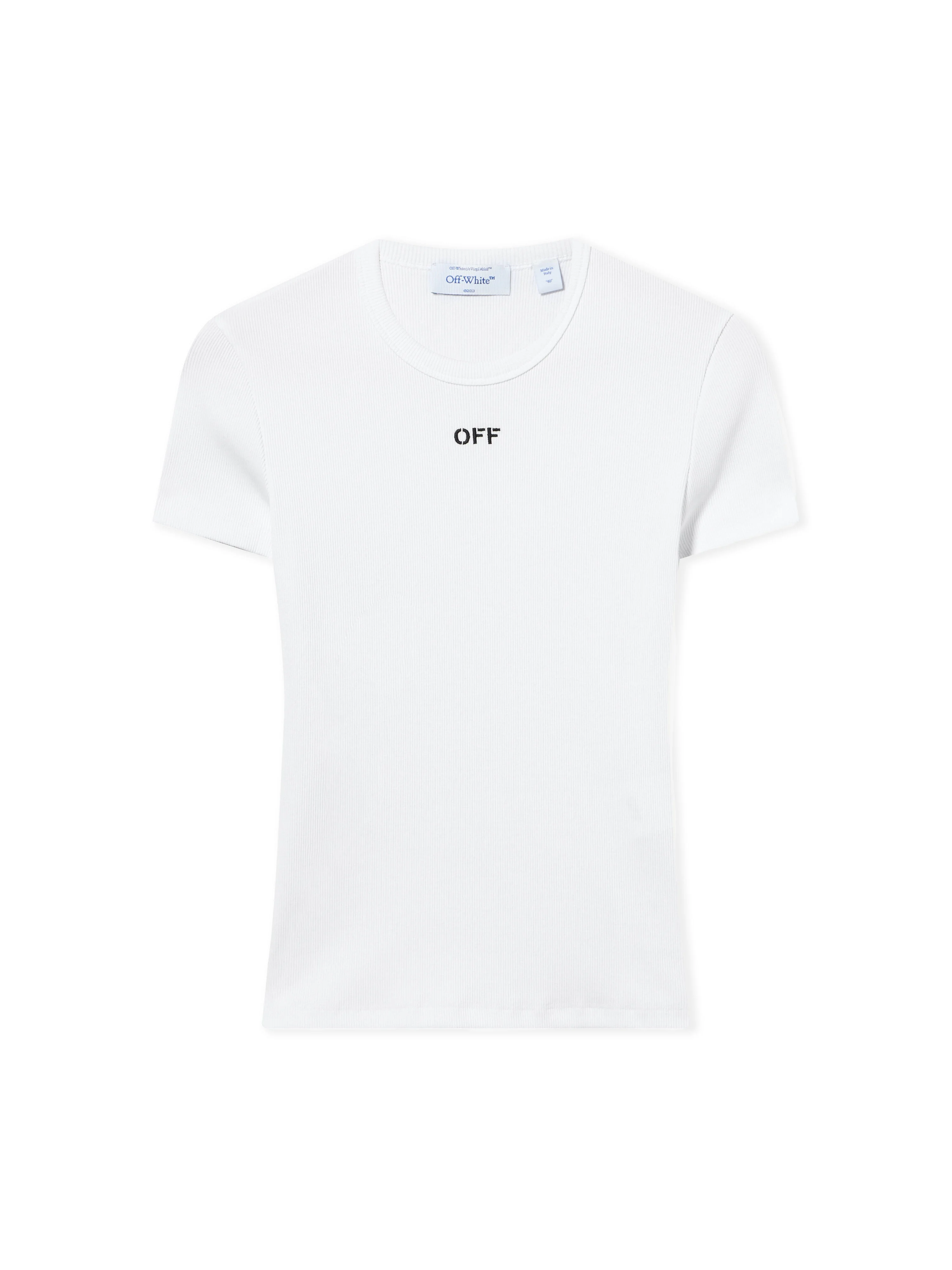The Off Stamp Ribbed Basic T-shirt features a classic ribbed design, offering a versatile addition to any wardrobe. This T-shirt combines simplicity with a touch of style, suitable for various occasions.' - Front logo detail - Ribbed texture - Regular fit DETAILS - Fabric: 98% Cotton, 2% Elastane - Code: 2AA065C99JER005W102