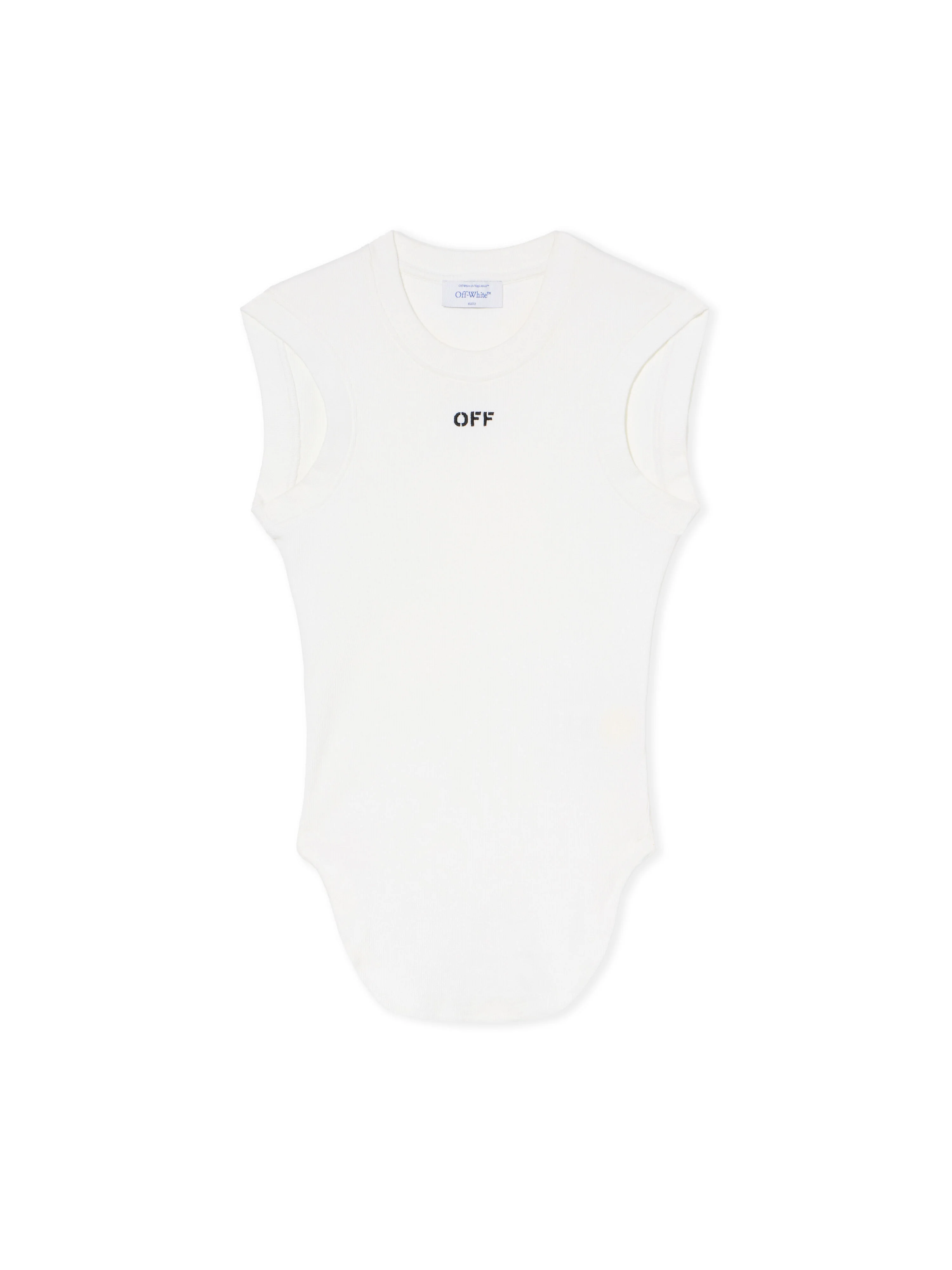 Ribbed jersey top featuring a sleeveless design and subtle branding. - Ribbed jersey construction - Sleeveless design enhances contemporary silhouette - Subtle front branding detail - Curved hem for a refined finish DETAILS - Material: 100% Cotton, Rib Details: 5% Elastane 95% Cotton - Code: OWAD26XF25JER0020110