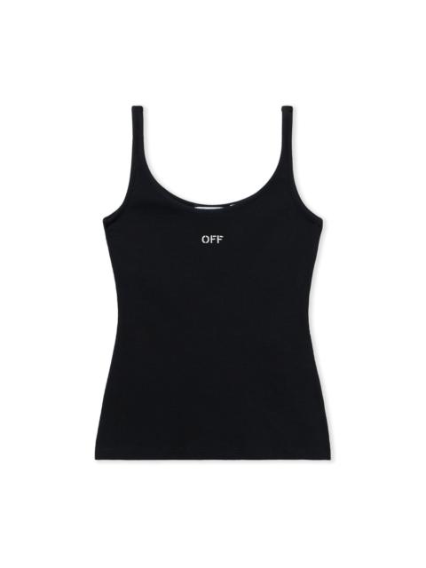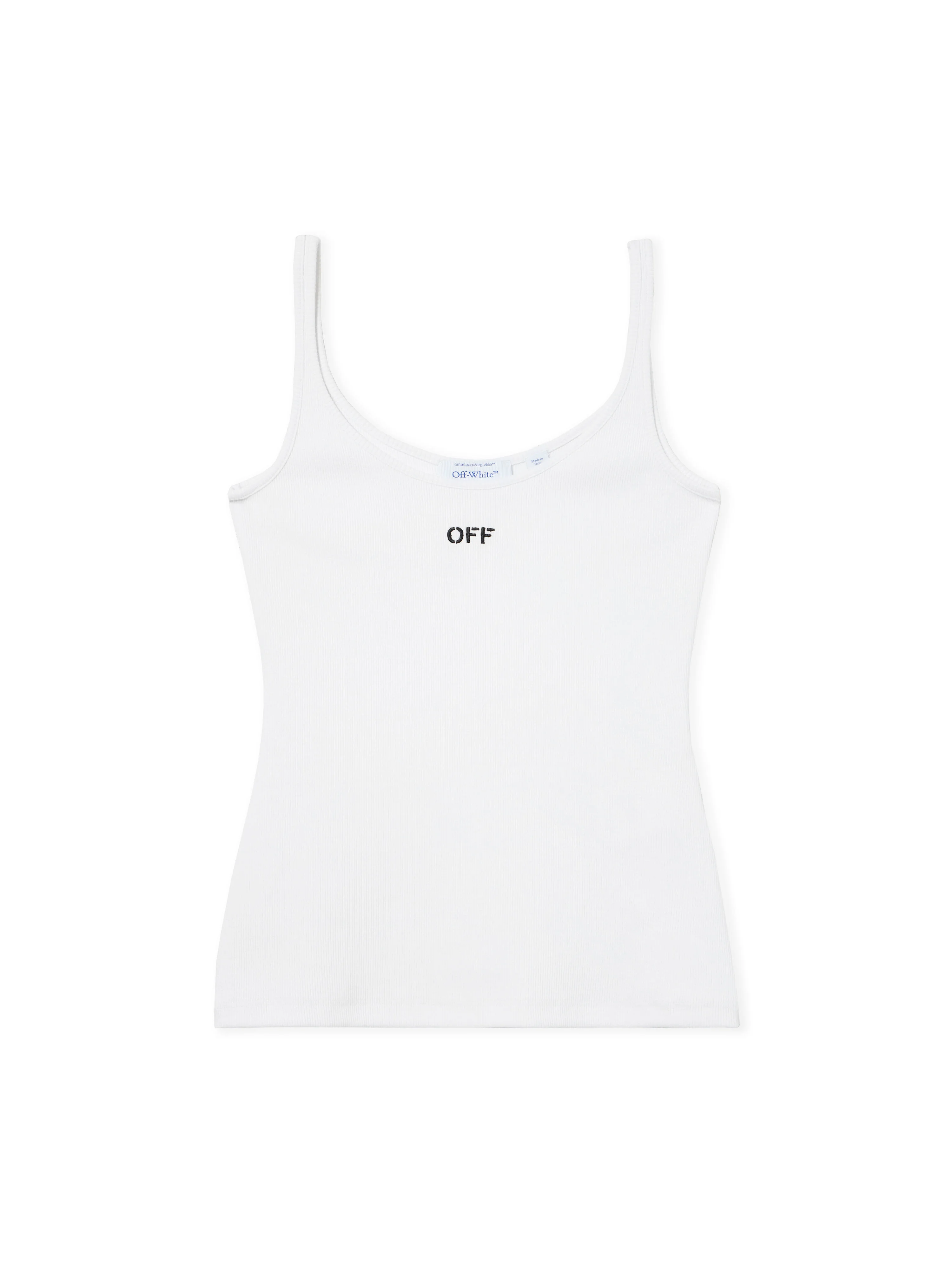 The Off Stamp Ribbed Tank Top features a sleek and contemporary design. This tank top is ideal for versatile styling, offering a comfortable fit with its ribbed texture. - Front logo detail - Ribbed texture - Scoop neckline - Sleeveless construction DETAILS - Fabric: 98% Cotton, 2% Elastane - Code: 2AD072C99JER002W102