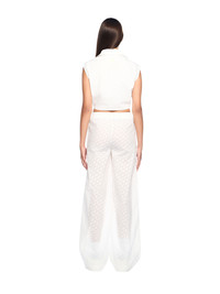 Wide-leg pants in soft fabric featuring a monogram pattern and elasticated waistband. - Elasticated waistband with drawstring - All-over monogram pattern - Wide-leg silhouette - Side pockets for functionality - Lightweight, breathable fabric - Back view showcases tailored fit DETAILS - Fabric: 53% Polyester, 47% Cotton - Code: OWCA196T25FAB0010118
