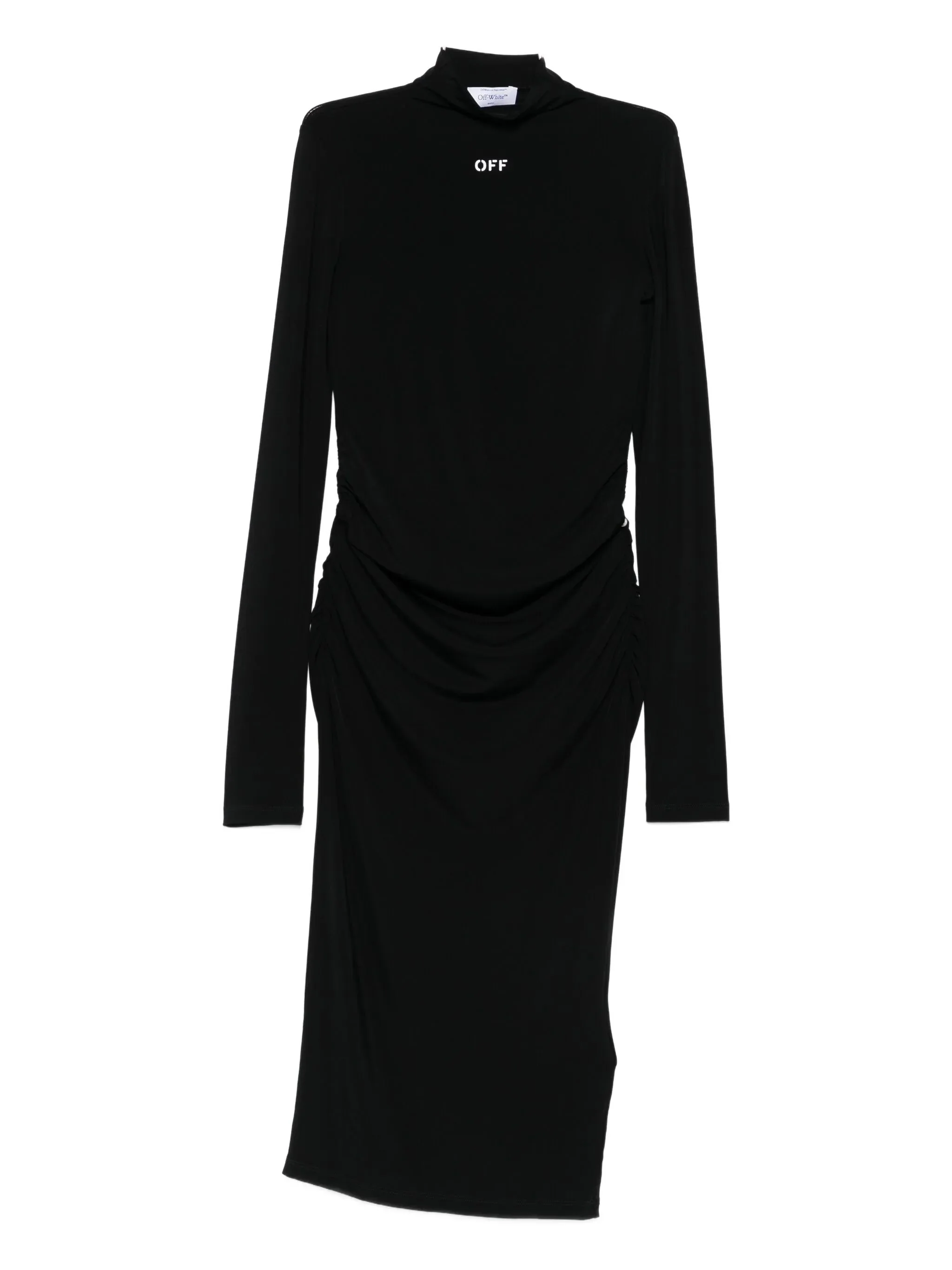 black high neck long sleeves ruched detailing signature Off Stamp motif midi length - Color: BLACK - Made in: Bangladesh - Designer Style ID: OWDB55EF25JE R001 1001 Composition and care Fabric: 100.0%