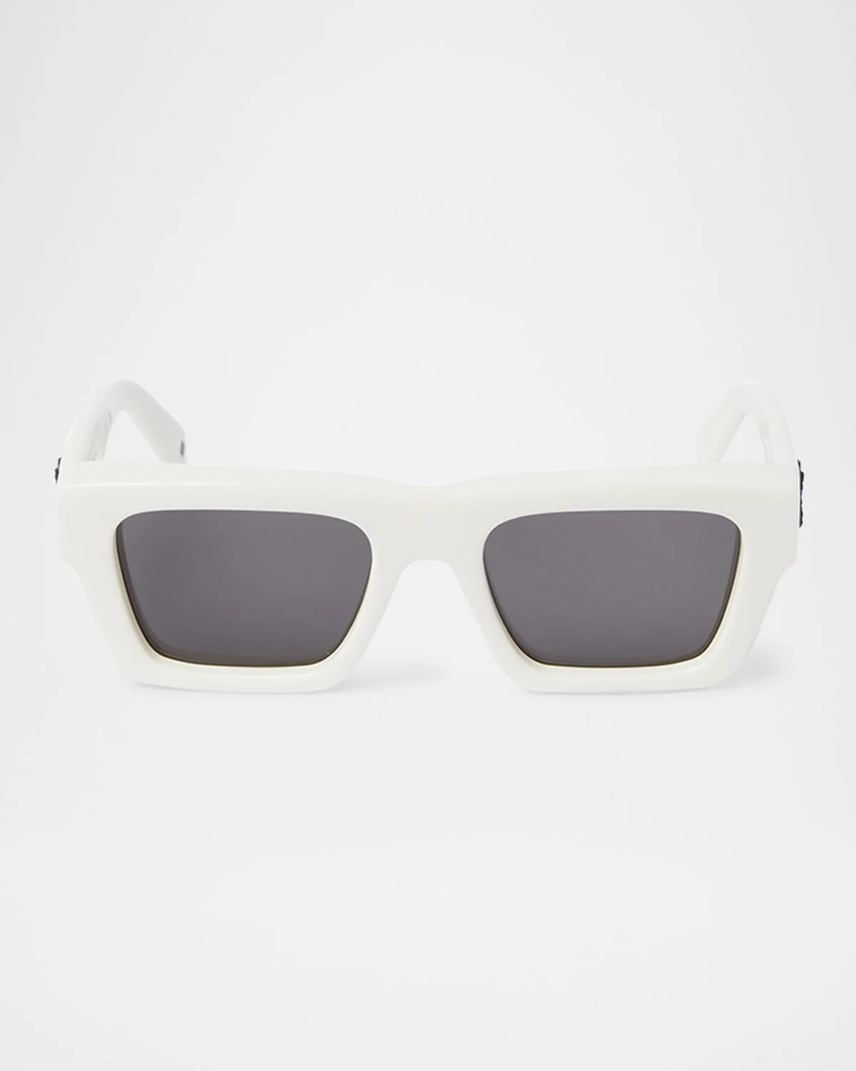 - Off-White "Oregon" rectangle sunglasses in acetate - Eye/bridge/temple (in mm): 52-20-145 - Solid lenses - Saddle nose bridge - Thin, tapered arms - Arrow detail at the temples - Acetate - 100% UVA/UVB protection - Made in Italy - Proposition 65 warning for California residents
