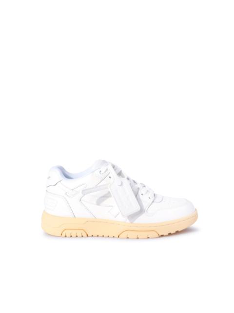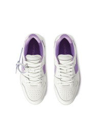 White low Out Of Office leather sneakers featuring tonal arrows and label at sides. White and liliac rubber sole. MATERIALS Lining: 86% Polyester Lining: 14% Leather Outer: 11% Polyester Sole: 100% Rubber Outer: 89% Leather FITTING Bust 0cm Height 0cm Hips 0cm Waist 0cm