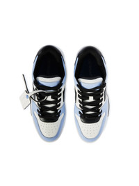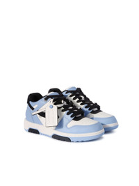 Light blue and black Out Of Office sneakers featuring white label detail and black arrows. Black laces. White Off-White logo. Swimming man detail. White and light blue rubber sole. MATERIALS Lining: 100% Recycled Polyester Lining: 100% Nylon Lining: 100% Polyurethane Outer: 100% Recycled Polyester Outer: 100% Leather Sole: 100% Rubber FITTING Bust 0cm Height 0cm Hips 0cm Waist 0cm