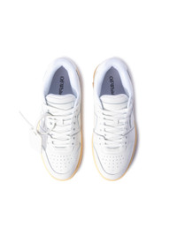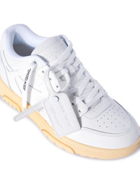 White low Out Of Office leather sneakers featuring tonal arrows and label at sides. Cream rubber sole. MATERIALS Lining: 86% Polyester Lining: 14% Leather Outer: 11% Polyester Sole: 100% Rubber Outer: 89% Leather FITTING Bust 0cm Height 0cm Hips 0cm Waist 0cm
