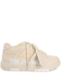 Out Of Office leather sneakers Highlights - Beige/white - Front lace-up fastening - Ridged rubber sole - Branded insole - Debossed logo to the rear - Tonal stitching - Signature arrows motif - Signature zip tie tag - Logo-debossed tongue - Perforated toebox - Round toe Imported Composition Outer: Calf Leather 100% Lining: Recycled Polyester 100% Sole: Rubber 100% SIZE & FIT Measurement HEEL 1.18 in(3 cm)