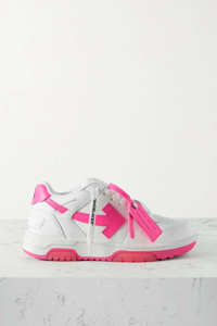 EDITORS'NOTES Forget about changing your email settings, Off-White's sneakers will let everyone know that you're 'Out of Office'. They're made from supple white leather with tonal laces and fuchsia trims. Style them with your favorite vintage jeans or tracksuit. SIZE & FIT - Fits true to size, take your normal size - Italian sizing DETAILS & CARE - Rubber sole measures approximately 30mm/ 1 inch - White and fuchsia leather (Calf) - Lace-up front