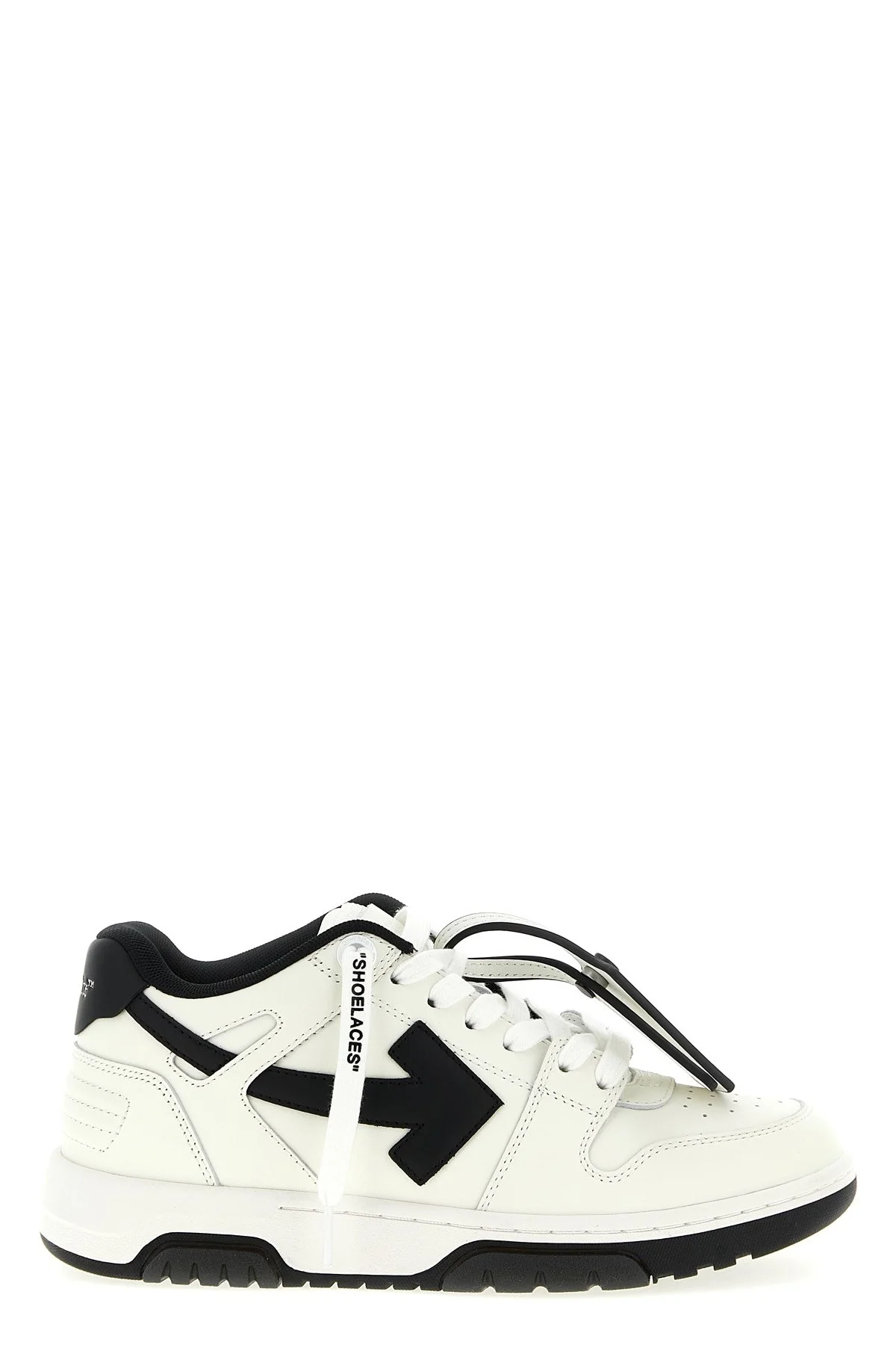 cod. OWIA259C99LEA01801100110 'Out Of Office' leather sneakers with contrasting details, laces and rubber sole. Color: White/Black Size & Fit: EU WOMEN Composition: 89% calfskin leather 11% polyester Made in: China