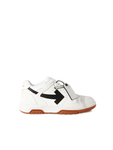 The Out Of Office Sneakers feature a refined urban-luxury design, combining distinct branding elements with classic sneaker aesthetics. An iconic Off-White™ model. - Signature arrow motif detail - Iconic zip tie - Quoted "Shoe Laces" - Branded tongue and heel counter - Lightweight cushioned midsole - Treaded rubber sole DETAILS - Upper: 89% Bovine Leather, 11% Recycled Polyester, Outsole: 100% Rubber, Lining: 85% Recycled Polyester, 15% Polyester - Code: OWIA259C99LEA0180130