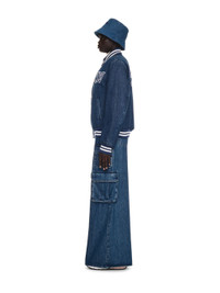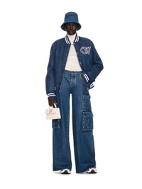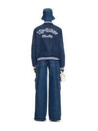 This bomber jacket is crafted from 100% cotton denim and features varsity-style logos on the front and reverse with striped ribbing at the cuffs and collar. Made in Italy. MATERIALS 100% Cotton FITTING Model Athiec Geng wears size 38 Height: 5’ 10" (179 cm) Chest: 30” (76 cm) Waist: 24” (61 cm) Hips: 34.5'' (88 cm)
