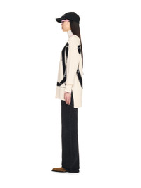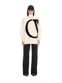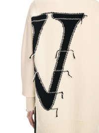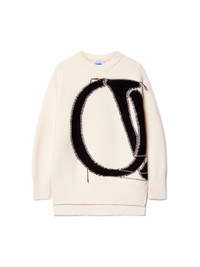 This 100% wool sweater features an oversized knit logo with unraveled details and a stepped hem. Made in Italy. DETAILS - Model Yi Xiang wears size S Height: 5' 8'' (177 cm) Chest: 30'' (77 cm) Waist: 25” (60 cm) Hips: 34.5'' (88 cm) - Materials:Wool 100% - Code: OWHE102C99KNI0010410