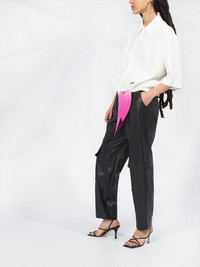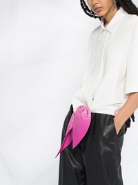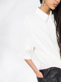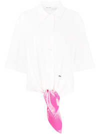 paint splatter shirt Show off your artistic side. This white and fuchsia pink shirt from Off-White is detailed with a paint splatter effect. All tied up in a bow! Featuring a classic collar, a front button fastening, half sleeves and a tie fastening. Made in Italy Composition Viscose 96%, Spandex/Elastane 4% SIZE & FIT Model measurements Height 5 ft 10 in(1.78 m) Bust/Chest 30.31 in(77 cm) Hips 36.61 in(93 cm) Waist 24.8 in(63 cm) FittingInformation This piece fits true to size. We recommend you get your regular size Cut for a loose fit Made with a mid-weight stretch fabric Washing instructions Dry Clean Only