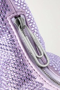 EDITORS'NOTES Off-White's tote is named for its silver-tone top handle that's cast to resemble the label's 'Paperclip' motif. Made from lilac satin, it's saturated with glittering crystals and has a crescent shape sized to fit a cardholder, keys and lipstick. SIZE & FIT - DETAILS & CARE - Lilac satin - Zip fastening along top - Comes with dust bag - Weighs approximately 2.4lbs/ 1.1kg