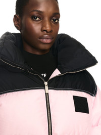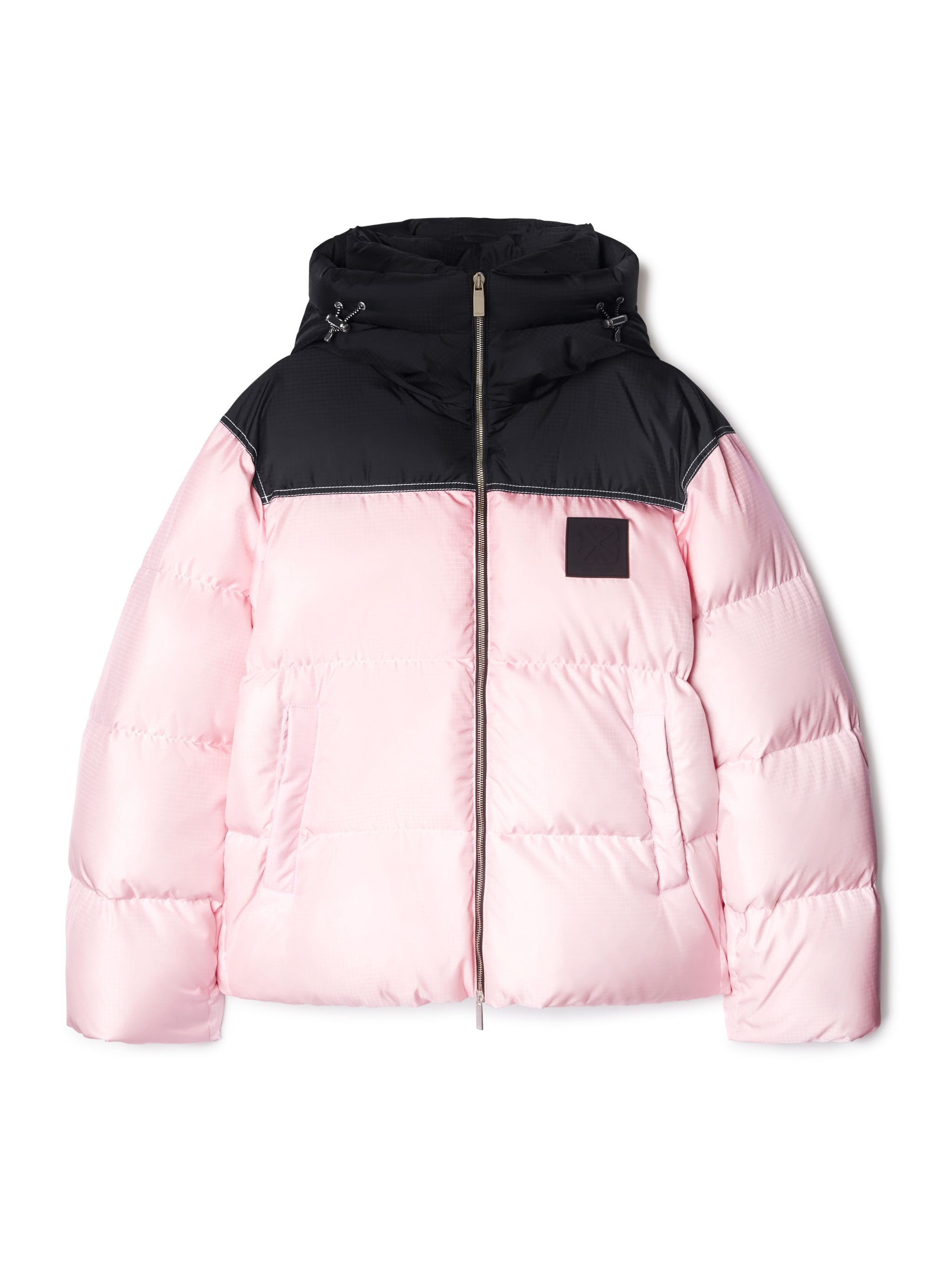 This nylon puffer jacket features a contrasting black hood with adjustable toggles and an arrow logo patch. Made in Italy. MATERIALS Outer: 100% Polyamide Lining: 100% Polyester Lining: 90% Down Lining: 10% Feather FITTING Bust 0cm Height 0cm Hips 0cm Waist 0cm