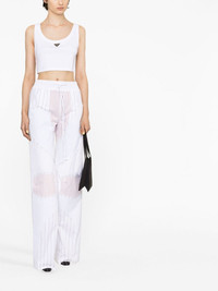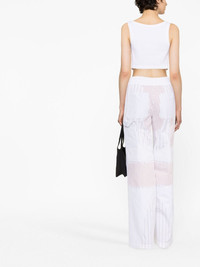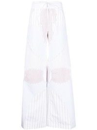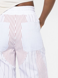 patchwork wide-leg trousers Off-White's penchant for utilitarian and streetwear-inspired designs is reflected in these white wide-leg trousers, made from crisp cotton in Italy. Sitting high at the waist where it fastens with a drawstring, the pair falls to a patchwork striped leg with panelled accents at the knees. Highlights - White/multicolour - Cotton - High-waisted - Elasticated drawstring waistband - Two side slit pockets - Two rear patch pockets - Patchwork design - Vertical stripe print - Wide leg Composition Cotton 100% SIZE & FIT Model measurements Height 5 ft 11 in(1.8 m) Bust/Chest 31.9 in(81 cm) Hips 36.2 in(92 cm) Waist 24 in(61 cm) FittingInformation Designed with a wide-leg cut, these trousers allow for a close fit at the waist and offer a loose and roomy fit over the leg The elasticated waist allows for a comfortable fit Made from a midweight non-stretch fabric This piece fits true to size – take your usual size