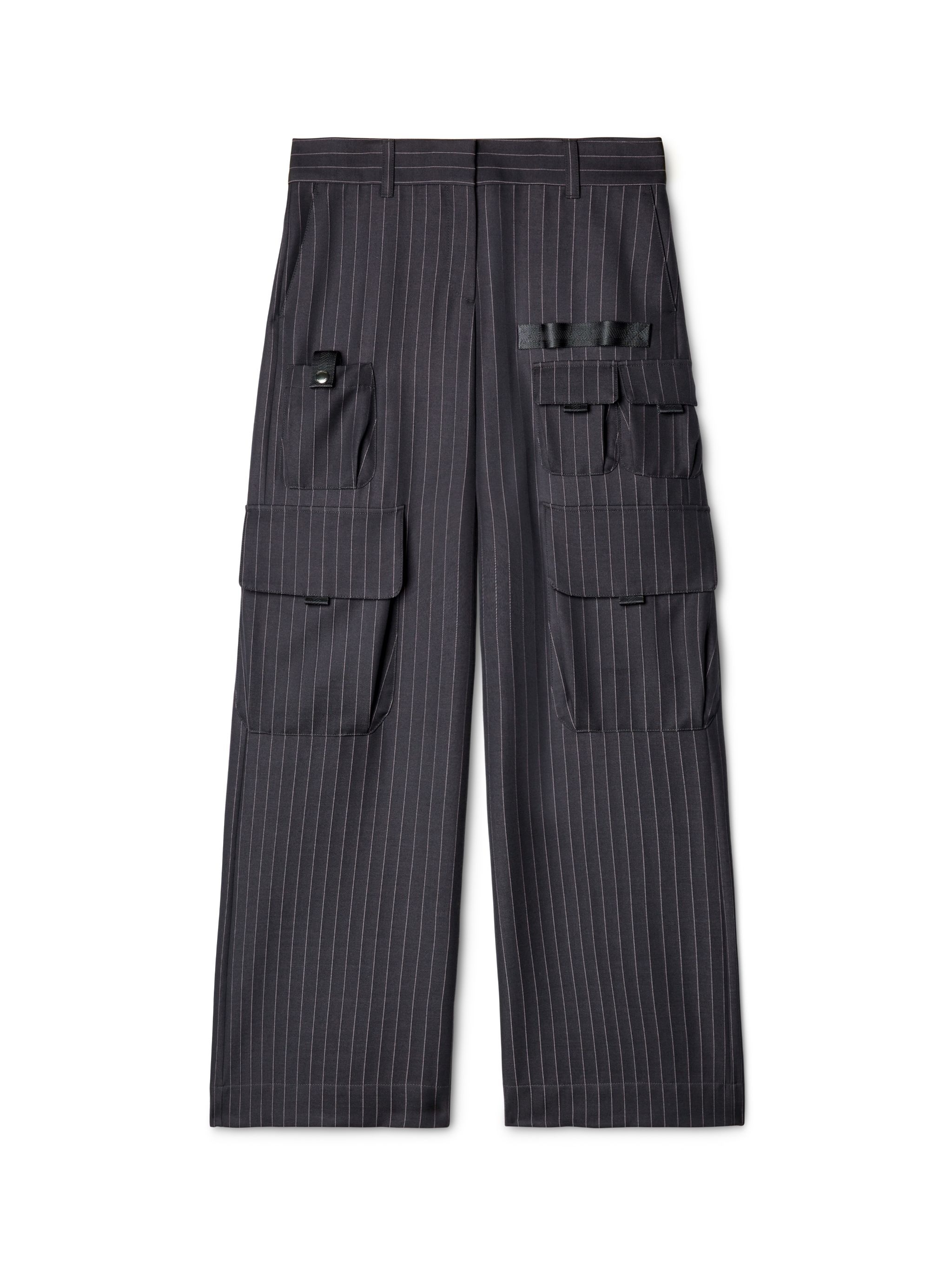 These wide-leg pinstripe pants are crafted from a wool blend and feature multiple cargo pockets. Made in Italy. MATERIALS 80% Virgin Wool 20% Polyester FITTING Model Sarah Ferguson wears 38 Height: 5' 10.5'' (179 cm) Chest: 31'' (79 cm) Waist: 23” (60 cm) Hips: 35'' (89 cm)
