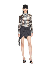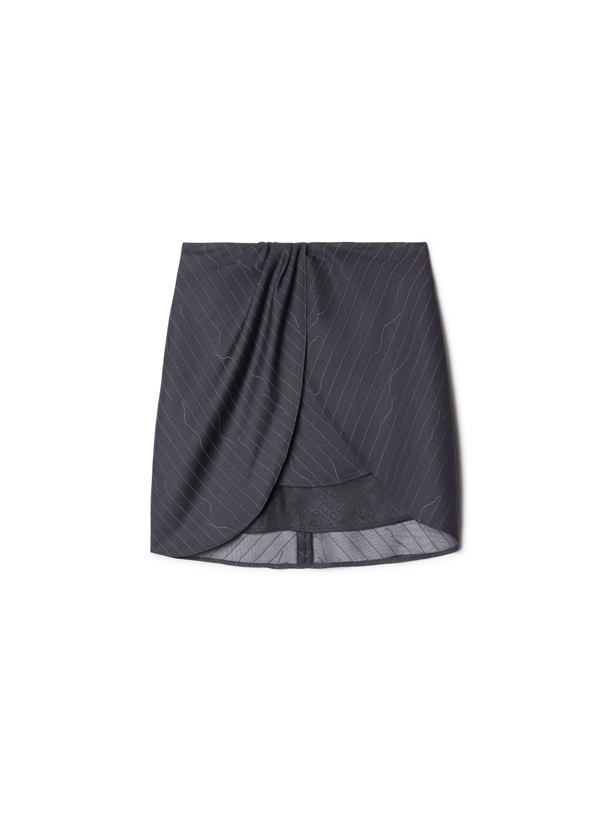 This mini skirt is constructed with twisted panels and made from a wool blend with a ruptured pinstripe. Made in Italy. MATERIALS Outer: 20% Polyester Outer: 80% Virgin Wool Lining: 100% Cotton FITTING Model Gao Qi wears size 36 Height: 5’ 10" (179 cm) Chest: 30” (77 cm) Waist: 24” (59 cm)