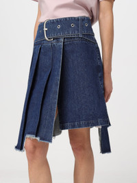 This pleated skirt is made from 100% cotton denim and features an oversized belt with eyelet fastenings. Made in Italy. MATERIALS 100% Cotton FITTING Model Gao Qi wears size 36 Height: 5’ 10" (179 cm) Waist: 24” (59 cm) Hips: 35” (88 cm)