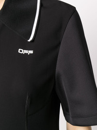 polo shirt dress Is it a polo shirt? Is it a dress? No, this quirky Off-White piece is both. Go for the unexpected. Featuring a collar style, a front button fastening, a printed logo to the front, short sleeves, a slim fit, a mid-length and an asymmetric hem. Made in Italy Composition Viscose 96%, Spandex/Elastane 4% SIZE & FIT Model measurements Height 5 ft 10 in(1.78 m) Bust/Chest 31.49 in(80 cm) Hips 36.22 in(92 cm) Waist 25.59 in(65 cm) FittingInformation This piece fits true to size. We recommend you get your regular size Designed for a close fit at the bust and waist, but loose at the hip Made with a mid-weight stretch fabric Washing instructions Dry Clean Only