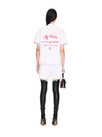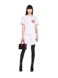 These 100% cotton poplin baseball shorts feature a large embroidered logo and lace trim. Made in Italy. MATERIALS 100% Cotton FITTING Model Yi Xiang wears size 38 Height: 5' 8'' (177 cm) Chest: 30'' (77 cm) Waist: 25” (60 cm) Hips: 34.5'' (88 cm)