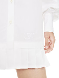 This poplin shirt dress is fitted through the torso, with voluminous balloon sleeves restrained by long cuffs. The hem is crisply pleated with a subtle embroidered logo above it. The sharply pointed collar draws inspiration from cowboy culture. Made in Italy from 100% cotton. MATERIALS 100% Cotton FITTING Bust 0cm Height 0cm Hips 0cm Waist 0cm