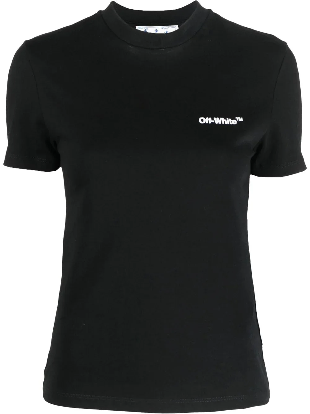 Helvetica logo-print T-shirt Season after season, Off-White adds a signature twist on each design, from logo prints to iconic motifs. A true example is this T-shirt that is presented in a black colourway and features a minimal logo print on the chest. Made in Italy Composition Polyester 100%, Cotton 100% SIZE & FIT Model measurements Height 5 ft 10 in(1.78 m) Bust/Chest 32.28 in(82 cm) Hips 35.03 in(89 cm) Waist 23.22 in(59 cm) FittingInformation This piece fits true to size. We recommend you get your regular size Cut for a slim fit Made with a mid-weight fabric Washing instructions Machine Wash