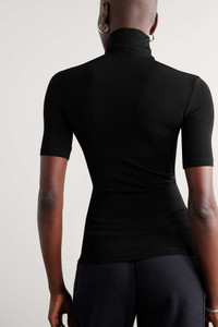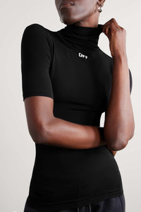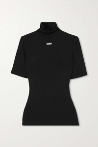 EDITORS'NOTES Cut from stretch-jersey that feels like a second skin, Off-White’s black turtleneck top reflects the brand’s sporty vision. It’s printed with the logo in graffiti-style lettering. Balance the fit by teaming yours with wide-leg pants or baggy jeans. SIZE & FIT - Fits true to size, however those who are between sizes should take the smaller size - Designed for a very close fit - Lightweight, stretchy fabric - Model is 177cm/ 5'10" and is wearing an IT 40 DETAILS & CARE - Black and white stretch-jersey - Slips on - 95% viscose, 5% elastane - Hand wash