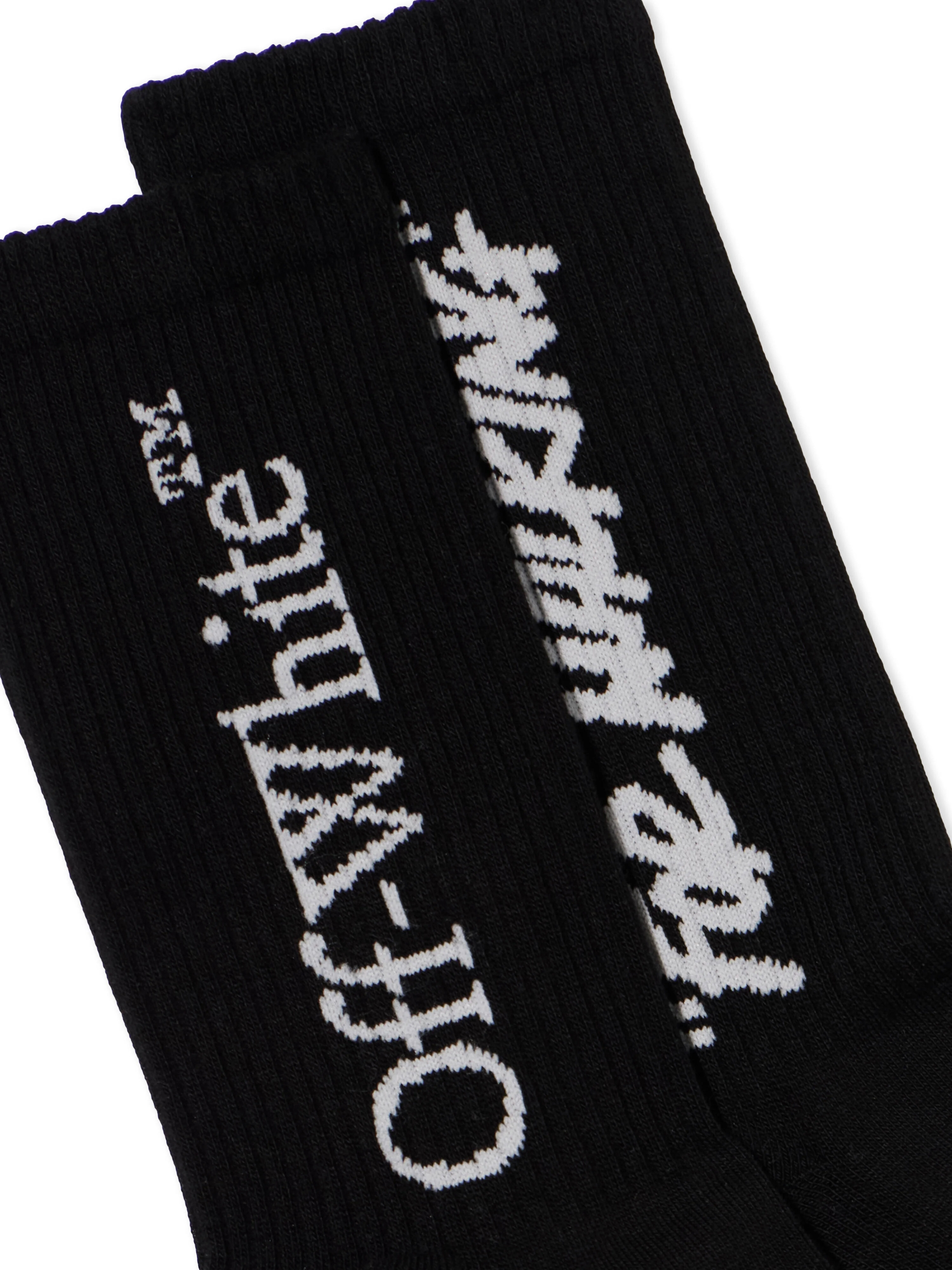 Constructed with precision, these Quote Mid Calf Socks from Off-White™ feature ribbed knit detailing and signature branding, embodying a blend of streetwear aesthetics and luxury craftsmanship. - Mid-calf height with ribbed knit texture - Distinctive 'Quote' motif on the front - Off-White™ branding on the sole - Engineered for comfort and style - Made in Italy DETAILS - Material: 3% Elastane 30% Polyamide (Nylon) 67% Cotton - Code: OWRA035F25KNI0031005