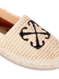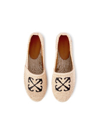 These espadrilles feature a traditional jute-wrapped rubber sole with a raffia upper decorated with an arrow logo. Made in Spain. MATERIALS Sole: 50% Elastodiene Outer: 52% Cotton Lining: 100% Calf Leather Lining: 100% Jute Sole: 50% Jute Outer: 48% Jute FITTING Bust 0cm Height 0cm Hips 0cm Waist 0cm