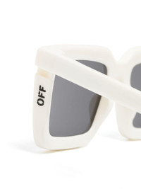rectangle-frame sunglasses These rectangle-frame sunglasses are decorated simply with a logo at the arms. Crafted from glossy white acetate, they're fitted with black tinted lenses. Highlights - White - Acetate - Rectangle frame - Uv-protective grey tinted lenses - Logo print to the side - Curved tips - These glasses come with a protective case. Made in Italy Composition Acetate 100% SIZE & FIT Measurement Arm Length 5.7 in(14.5 cm) Bridge Width 0.82 in(2.1 cm) Lens Diameter 2.04 in(5.2 cm) Total Width 5.74 in(14.6 cm)