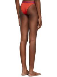 Stretch technical satin jersey bikini top in red. Self-tie. Fully lined. Stretch technical satin jersey bikini bottom in red. Low-rise. Fully lined. Supplier color: Coral Red Body 1: 78% polyester, 22% elastane. Body 2: 78% polyester, 22% elastane.