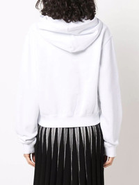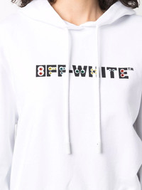 rhinestone-embellished logo hoodie Off-White elevates the timeless hoodie silhouette with colourful rhinestones sitting atop a printed logo at the front. Cut for a relaxed fit, this optical white top is made from soft cotton and channels the sportswear references found throughout the brand's edit. Highlights - White/black - Cotton - Rhinestone embellishment - Logo print to the front - Drawstring hood - Long sleeves - Ribbed hem - Ribbed cuffs Imported Composition Cotton 100% SIZE & FIT Model measurements Height 5 ft 10 in(1.79 m) Bust/Chest 33.07 in(84 cm) Hips 35.82 in(91 cm) Waist 24.01 in(61 cm) FittingInformation This piece fits true to size. We recommend you get your regular size Cut for a loose fit Made with a mid-weight fabric Washing instructions Machine Wash