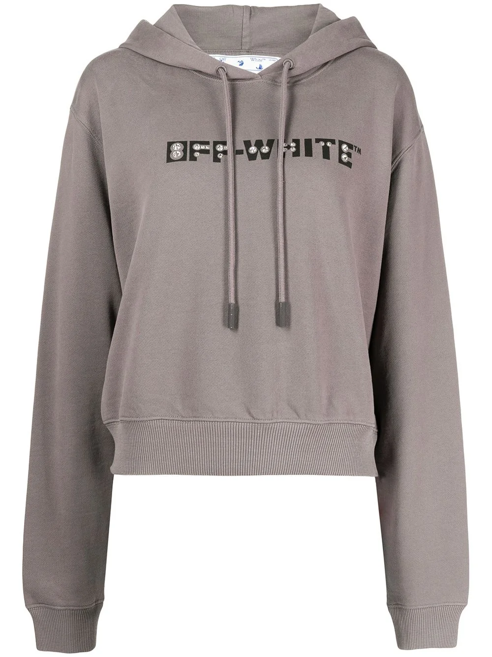rhinestone-embellished logo hoodie Off-White elevates the timeless hoodie silhouette with colourful rhinestones sitting atop a printed logo at the front. Cut for a relaxed fit, this grey top is made from soft cotton and channels the sportswear references found throughout the brand's edit. Highlights - Grey - Cotton - Rhinestone embellishment - Logo print to the front - Drawstring hood - Long sleeves - Ribbed hem - Ribbed cuffs Imported Composition Body: Cotton 100% SIZE & FIT Model measurements Height 5 ft 10 in(1.77 m) Bust/Chest 31.49 in(80 cm) Hips 34.64 in(88 cm) Waist 23.62 in(60 cm) FittingInformation This piece fits true to size. We recommend you get your regular size Cut for a loose fit Made with a mid-weight fabric Washing instructions Machine Wash