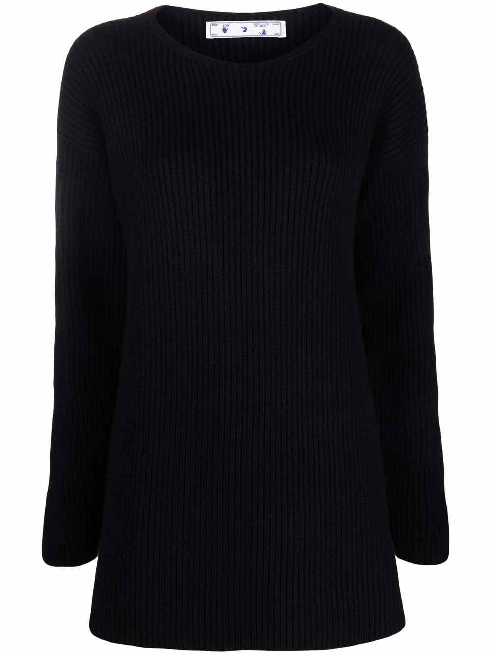 ribbed-knit wool jumper Exhibiting Off-White's minimal side, this ribbed-knit jumper is crafted in a virgin wool construction. The brand's street style-edge is retained with the garment's dropped shoulders and oversized silhouette. Made in Italy Composition Virgin Wool 100% SIZE & FIT Model measurements Height 5 ft 11 in(1.8 m) Bust/Chest 31.49 in(80 cm) Hips 36.61 in(93 cm) Waist 24.4 in(62 cm) FittingInformation This piece fits true to size. We recommend you get your regular size Cut for a loose fit Made with a mid-weight fabric Washing instructions Dry Clean Only