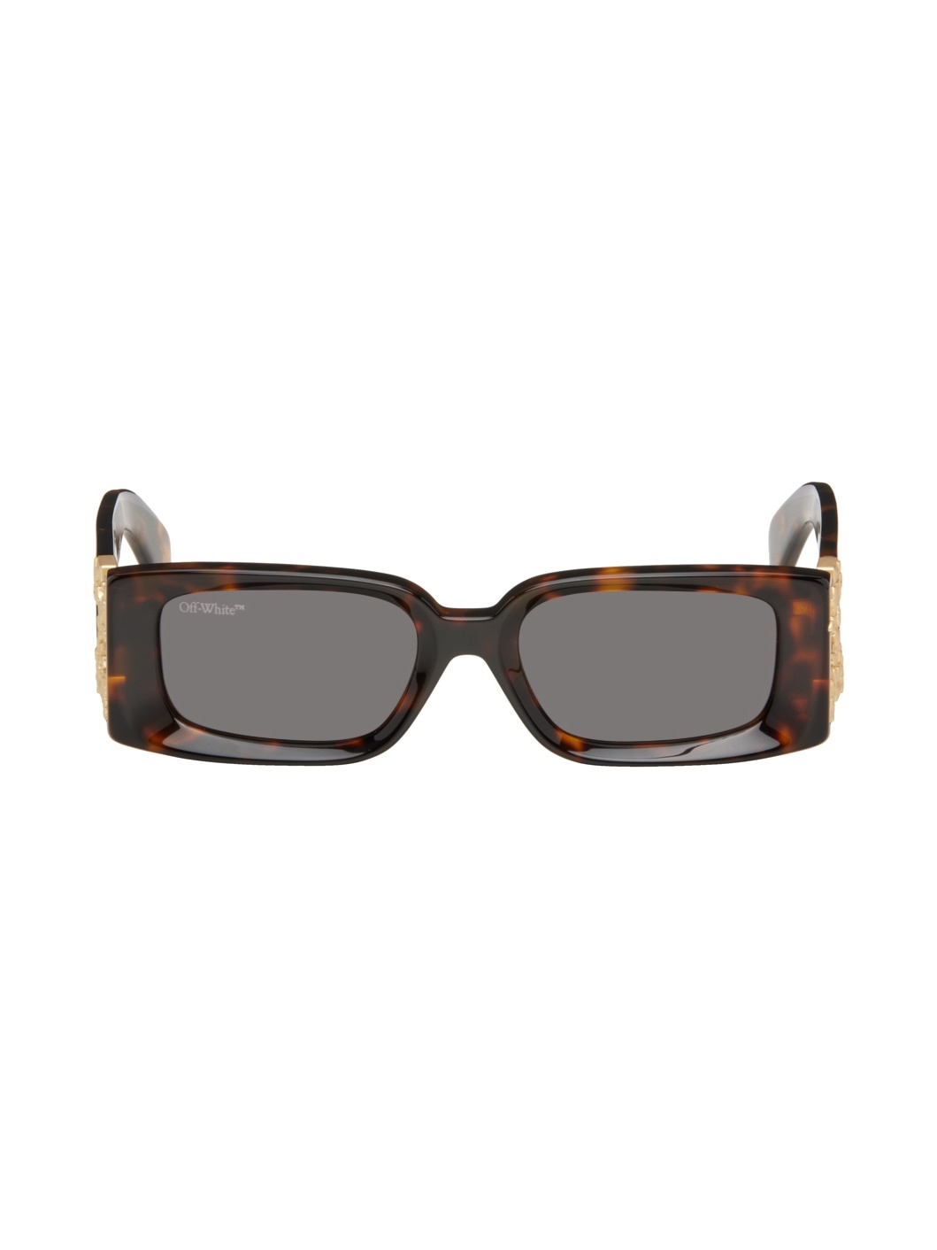 Rectangular acetate-frame sunglasses in tortoiseshell. · Gray lenses · Logo etched at lens · Integrated nose pads · Logo hardware at temples · Exposed core wire at arms · Pouch included · Size: 52.18 145 Supplier color: Havana/Dark grey