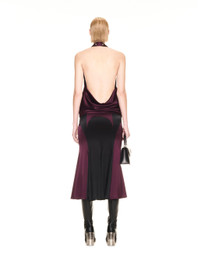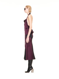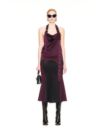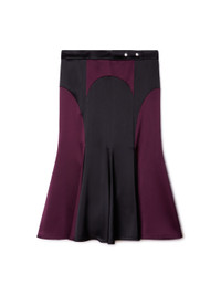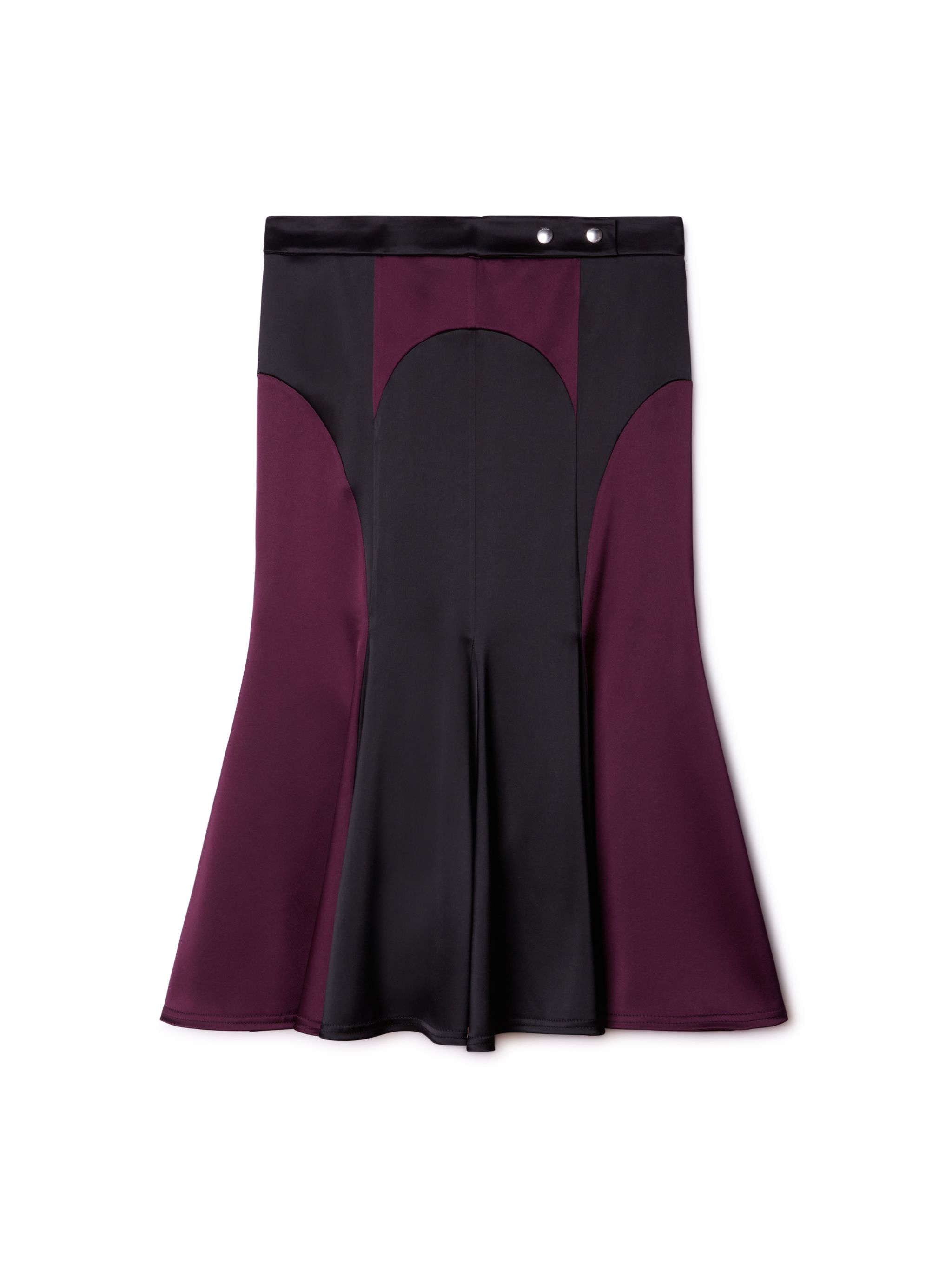 Bordeaux and black midi skirt featuring silver details. MATERIALS 17% Polyethylene 83% Triacetate 6% Elastane 85% Viscose 9% Polyamide FITTING Model Elisa Nijman wears size S Height: 5’ 8" (179 cm) Chest: 32“ (81 cm) Waist: 23” (60 cm)