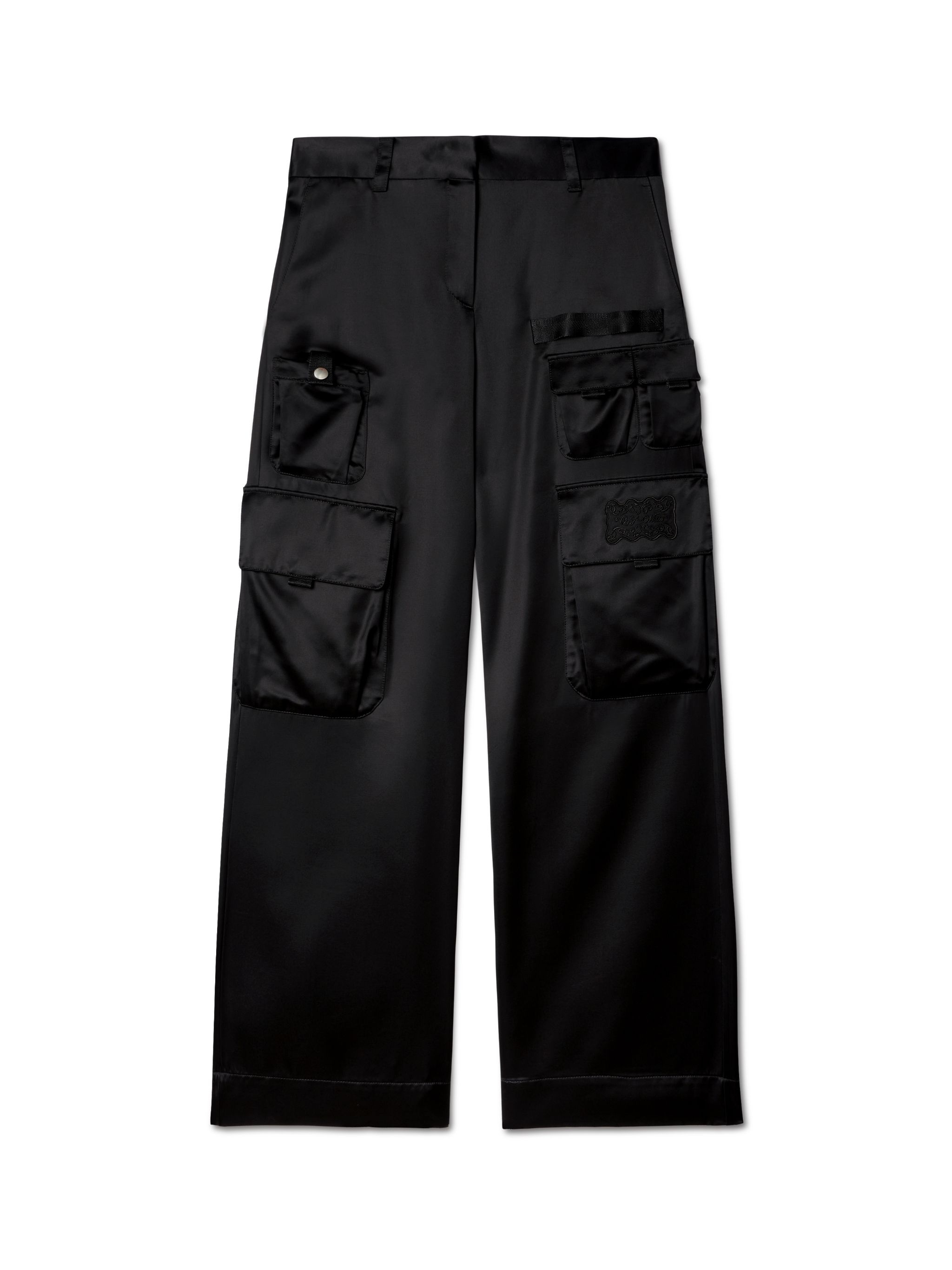 These wide-leg pants are crafted from satin and feature multiple cargo pockets. Made in Italy. MATERIALS 100% Sustainable Viscose FITTING Model Yi Xiang wears size 38 Height: 5' 8'' (177 cm) Chest: 30'' (77 cm) Waist: 25” (60 cm) Hips: 34.5'' (88 cm)