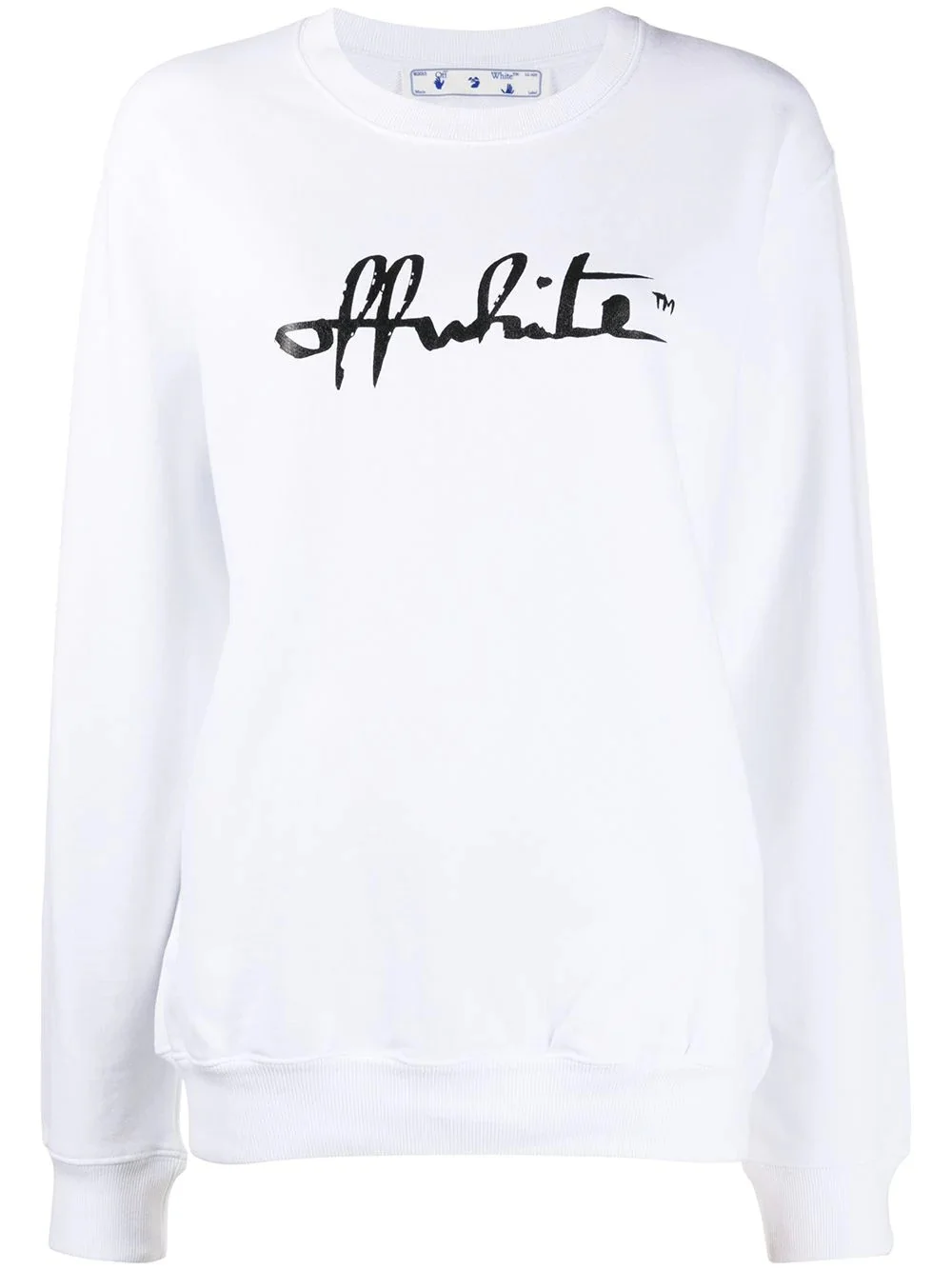 script logo sweatshirt Prefer to keep things casual today? Exude laidback cool with this script logo sweatshirt from Off-White that is a comfy joy to wear thanks to a lightweight cotton construction. Make dressing up easy again. Highlights - White/black - Cotton - Crew neck - Drop shoulder - Logo print at the chest - Long sleeves - Ribbed hem - Ribbed cuffs Imported Composition Cotton 100% SIZE & FIT Model measurements Height 5 ft 11 in(1.8 m) Bust/Chest 33.07 in(84 cm) Hips 37.4 in(95 cm) Waist 25.19 in(64 cm) FittingInformation This piece fits true to size. We recommend you get your regular size Cut for a relaxed fit Made with a mid-weight fabric Washing instructions Machine Wash